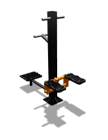 Конструкция тренажера – сборная, в основе опорный столб с ручками. К нему крепятся шаговые детали с подножками из пластика. Для безопасного выполнения упражнений, ручки имеют рукоятки из атмосферостойкого пластика. Вся конструкция монтируется на фундаментную опору, для этого используются гайки и болты.